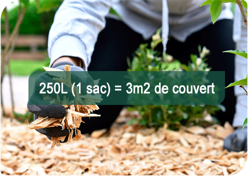 Notre paillage est soigneusement formulé pour favoriser la rétention d'humidité et enrichir votre sol. Mis en sac de 250 litres, il offre une couverture idéale pour une zone de 3m².